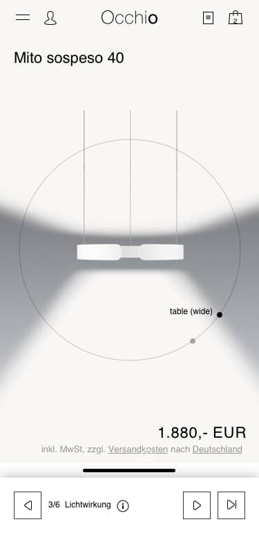 My main project for Occhio was the configurator, where customers as well as professional dealers can configure and order lights themselves, as well as redesigning the entire website.